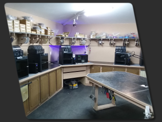 This is where the magic happens. Here in my 850sft workshop, I design, build, package and ship each work of art I create. I employ a fleet of Bambu Labs P1S 3D printers. Each powered by my own solar power facility located elsewhere on the property. This ensures that production is stable and continuous, 24 hours a day, 7 days a week.